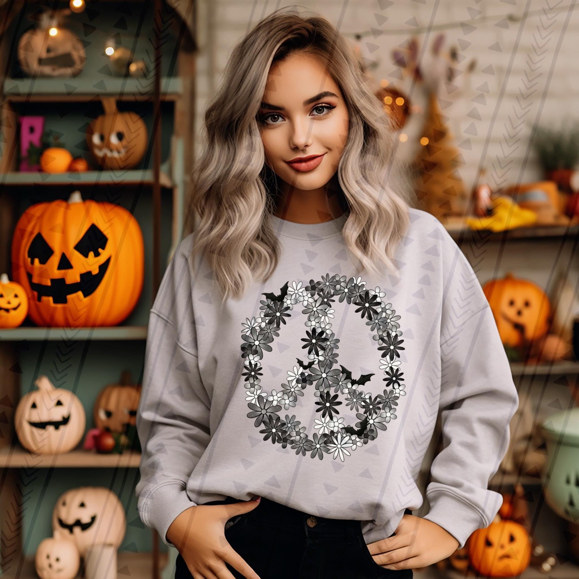 Floral Bat Peace Sign DTF Transfer